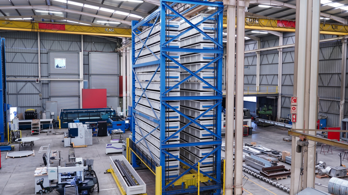 Automated bar and tube storage condenses long stock into a compact vertical bank of drawers, then brings the selected bundle to a waist height access bay. Operators call drawers with simple controls, so bars, tubes, and profiles are presented in repeatable positions without dragging across adjacent stock or staging pallets in shared aisles.
