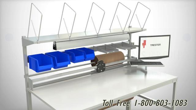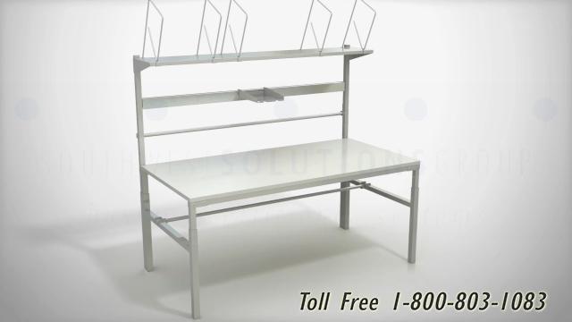 Packing and shipping station benches and tables are adjustable ergonomic workstations that increase productivity and efficiency. A variety of accessories and options provide a clean environment that makes it easier to rotate packing personnel and reach larger volumes of order packing. Its ergonomic design is completely adjustable to an individual worker’s needs. In addition, matching trolleys, cabinets, lights, chairs, and more are also available for a fully functional workstation.